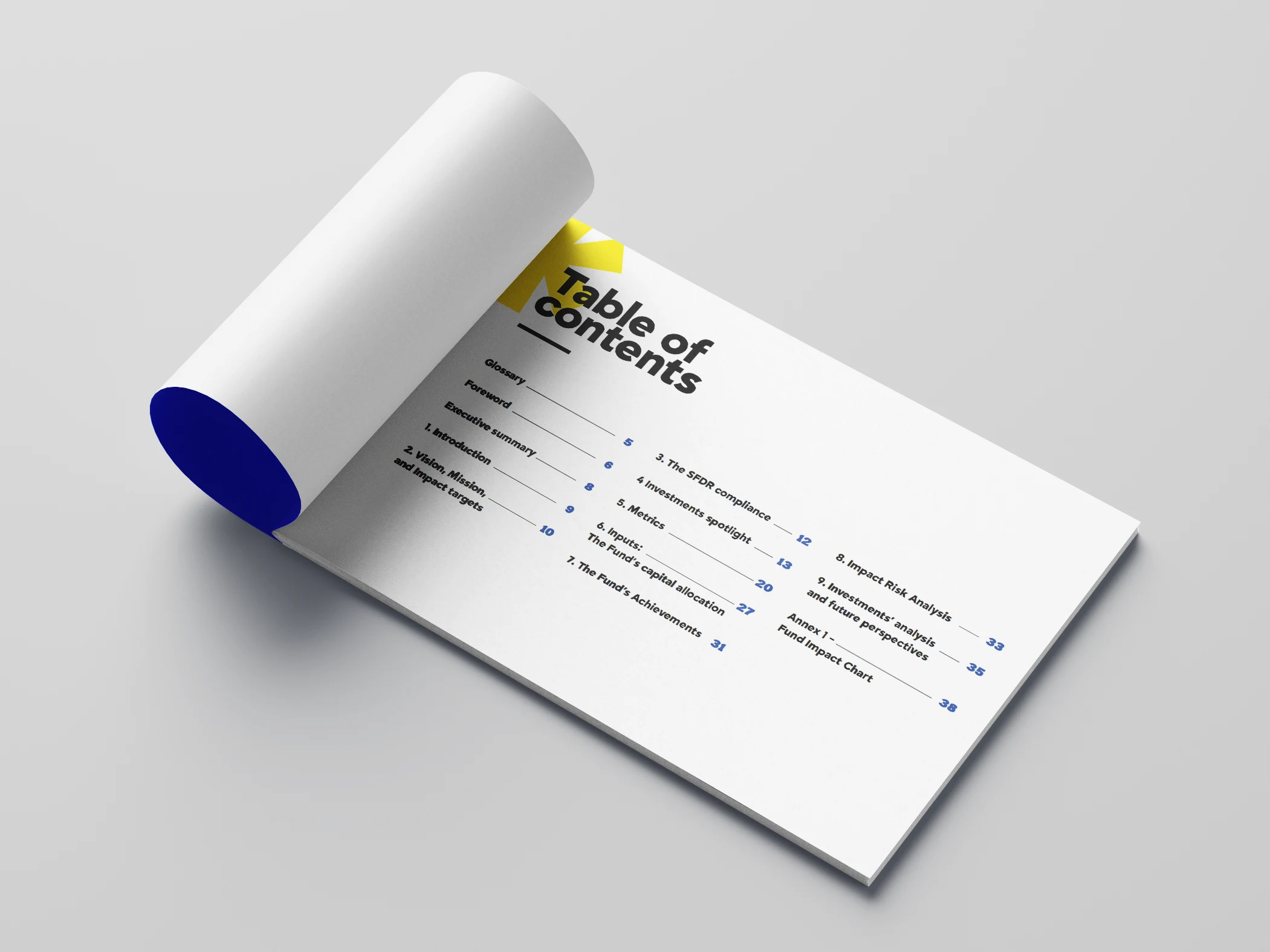 Graphic Design | Impact Report “Investing to Make a Difference” | Investcorp-Tages Impact Fund